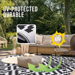 - REVERSIBLE & VERSATILE: Reversible design with modern geometric pattern on both sides. Easily refresh your outdoor space, like patio, porch, backyard, deck, rv camping and so on, with a quick flip.