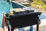 - DRINKS STAY COLD FOR UP TO 36 HOURS - Host and entertain guests at your party knowing that your drinks will stay cold and within reach. The rustic style of this Permasteel outdoor bar cart will make your family event or get-together stand out. This outdoor patio cooler on wheels will definitely be an eye-catcher at your parties.