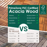 - 【Sturdy & Weather-resistant】-The PrimeZone interlocking deck tiles are made from premium and sustainable FSC-certified acacia wood and high quality PP plastic base, heavy duty and not easily deformed or cracked, our interlocking patio deck tiles are designed to withstand changing weather and heavy use. Rain or shine, your outdoor flooring won't be easily blown away by the wind and will remain strong and beautiful for years to come.