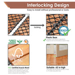 - 【Safe and Slip-resistant】-Compared to plastic interlocking deck tiles, FSC-certified Acacia Wood deck tiles are designed with safety in mind, The wood-textured surface of the flooring tiles provides better traction that ensures you won't skid or fall when walking. Making them safe and perfect for high-traffic areas.