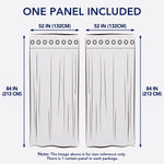 - PACKAGE CONTENT & PRODUCT DIMENSIONS: Our weatherproof outdoor curtains are sold in panel (1 panel in each package). Each curtain panel measures 52” width by 84” Length, a set of 2 curtain panels measures 104” width by 84” Length. The curtains are constructed with silver rust-proof grommets with inner diameter of 1.6”