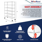 • LARGE STORAGE RACK SHELF: Being 48" wide by 18" deep by 72" high (76" when using included 4" casters) and having 6 levels of metal shelves, our storage shelves give you ample storage space. Its open sides let you quickly access your items. With adjustable wire shelves, you can solve your shelving unit problems and eliminate clutter with a clean and organized look.