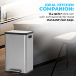 Details: 50 Liter / 13.2 Gallon Soft-Close, Smudge Resistant Trash Can with Foot Pedal and Built in Filter- Stainless Steel, Sleek Finish