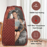 - [1000W faster heating]: The steam engine power is 1000W, which can fill the entire steam tent in a short time, allowing you to enjoy the sauna faster and better. The steam sauna provides 9 heating levels (maximum temperature 140°F/60°C). Adjust according to your needs, the water capacity is 2.6L, and the sauna time can be set between 1-90 minutes.
