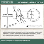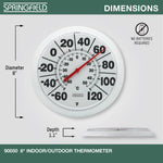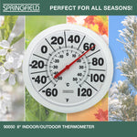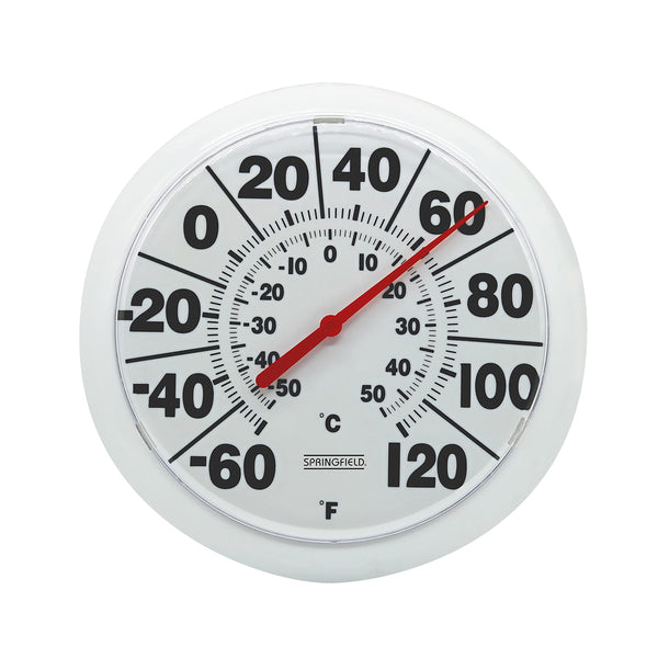 Details: Springfield’s 8-inch dial thermometer is an essential tool for gardeners and outdoor enthusiasts. The dial thermometer boasts a classic look with a sleek bezel frame that fits perfectly into any deck, patio, or garage layout. With both F° and C° scales, you'll always have the most accurate readings at-hand in any temperature format. The 8-inch dial provides at-a-glance readings from a distance, while the thermometer’s shatterproof lens is designed to withstand harsh elements without compromising visibility. Its tough, weather-resistant finish resists stains and will not fade.