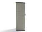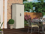 Details: Ideal for smaller spaces such as patios, porches, and balconies, this versatile Vertical Storage Shed offers countless organizational opportunities. From storing long-handled tools to ladders, gardening gear, and more, this small-footprint storage solution offers endless everyday utility. The durable multi-wall resin construction allows for year-round use and easy maintenance, and the customizable interior supports up to four shelves (not included) for even more efficient organization. With 22 cubic feet of space, there is plenty of room to store and organize. This is a versatile tool shed and can be placed in your garage and outdoors. Its resin construction is weather resistant and durable. Outdoor storage just got a lot easier with this Vertical Storage Shed.