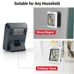• Multiple Placement Options: This humidistat has 3 placement options - Tabletop Stand / Magnetic Back / Hanging Mount, place the wall thermometer anywhere you wish such as living room, baby room, kitchen, greenhouse, guitar room, office or cellar