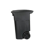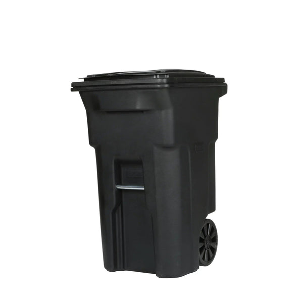 Introducing Toter's 64-gallon black garbage can, a highly durable and long-lasting waste management solution. The trash can is designed with ergonomics in mind, featuring an ideal handle height and rugged wheels that make maneuvering effortless, even when the bin is full. The trash can is constructed using Toter's Advanced Rotational Molding ™ process, ensuring superior strength and no seams, making it more than 2X stronger than other trash cans.