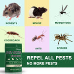 - QUICK RESULT:Our new upgrade rodent repellent is made of concentrated essential Formula: peppermint, create powerful pest control barrier, which is twice as effective as any other products. Proven to repel different pests effectively. Such as rodents, mouse, mice, rats,insect,roach,Spider, and Other Pests.
