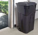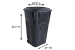 - Heavy Duty Handle – Make transportation effortless with the comfortable and easy to grip handle on this black trash can with wheels. Paired with the integrated wheels, getting this 32 gallon trash can to the curb and back has never been easier.