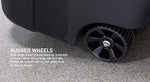 - Rugged Wheels – Built tough, these wheels make for smooth transport while the garbage can is in use, making this perfect for outside use on your patio, deck or in your garage. Tote this trash bin wherever you need it to go without having to lift it.